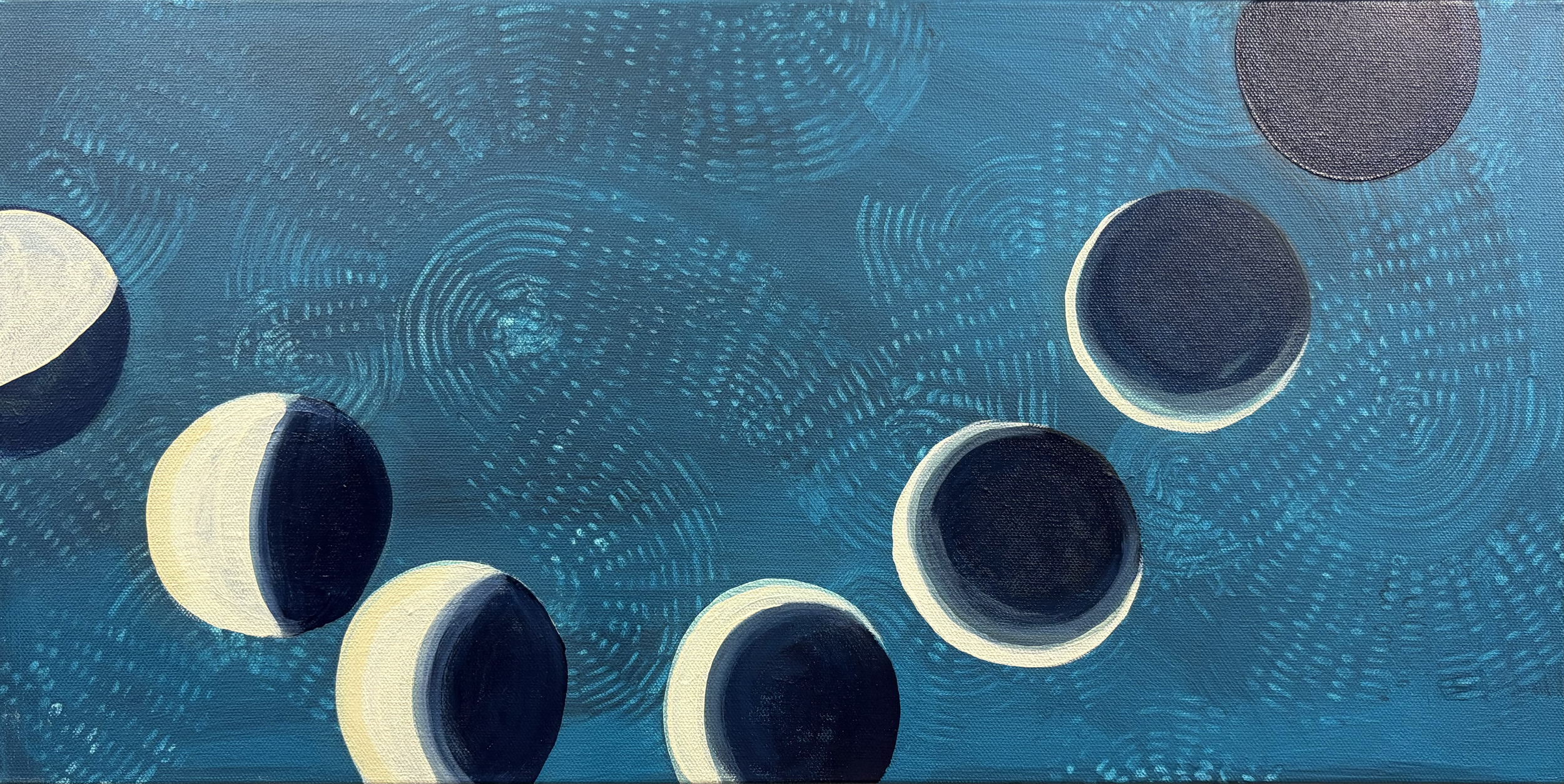 Her technique, intentionally loose and uncontrolled, allows for natural organic textures and patterns to coalesce into imagined, yet familiar natural scenery and dreamscapes. Alex creates work with a variety of water-based mediums, her favorite being acrylic for its ability to be watered down and layered. She is inspired by the symbolism and spirituality that ebbs and flows throughout nature.