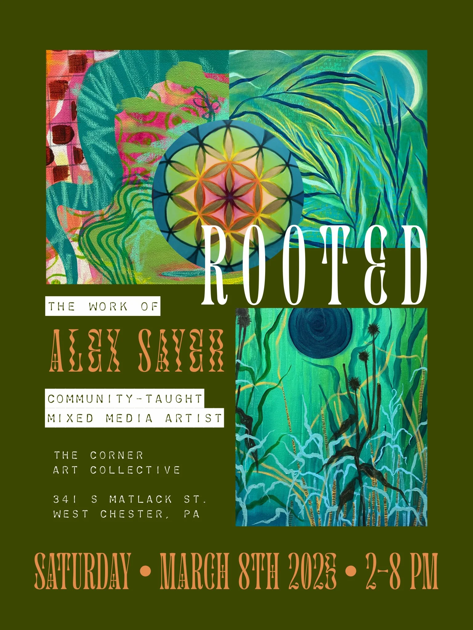 Alex has been a practicing artist for ten years. After relocating to the area with her family, she sought out a creative practice to expand her personhood outside of the identity of “mother”. Alex creates to develop connection with community and as a way to transmute the pain and discomfort of living in a world where hyper-individualism is sold and delivered next-day while every heartbreak from the whole world is streamed and available immediately in our pocket.